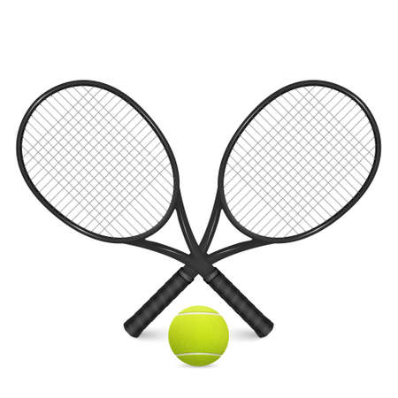 2 つのテニス ラケットとテニスボールは 白い背景で隔離 ベクトル イラスト漫画のスタイルで のイラスト素材 ベクタ Image