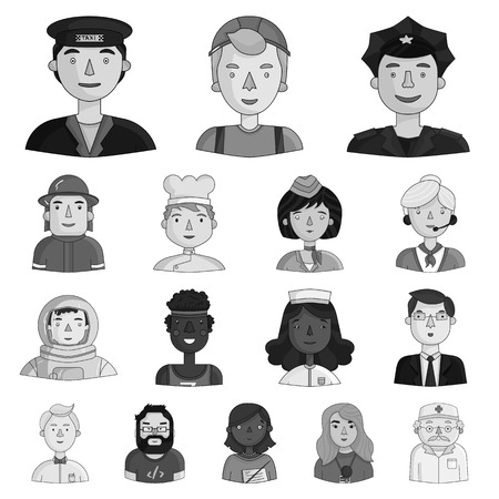 デザインのためのセットコレクションで異なる職業のモノクロアイコンの人々 労働者と専門家ベクターシンボル株式ウェブイラスト のイラスト素材 ベクタ Image