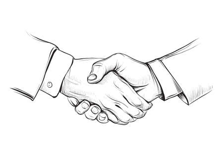 ビジネス ハンドシェイク 白い背景で隔離の黒い線で描かれたベクター イラスト スケッチ手のイラスト素材 ベクタ Image