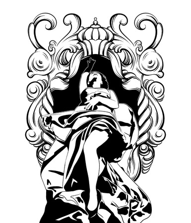 エルメスのベクター イラストです 手描きのアートワーク エルメスの翼と装飾的な要素を持つ肖像画を カード ポスター バナー T シャツの印刷のテンプレートです のイラスト素材 ベクタ Image