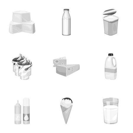 牛乳は モノクロ スタイルでアイコンを設定します ミルク ベクトル シンボル ストック イラストの大きなコレクションのイラスト素材 ベクタ Image