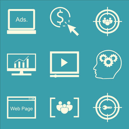 Seo マーケティングや広告ペイパー クリック 動画広告 Web ページ上のアイコンのセットです プレミアム品質 Eps10 ベクトル イラスト携帯アプリは Ui 設計のため のイラスト素材 ベクタ Image